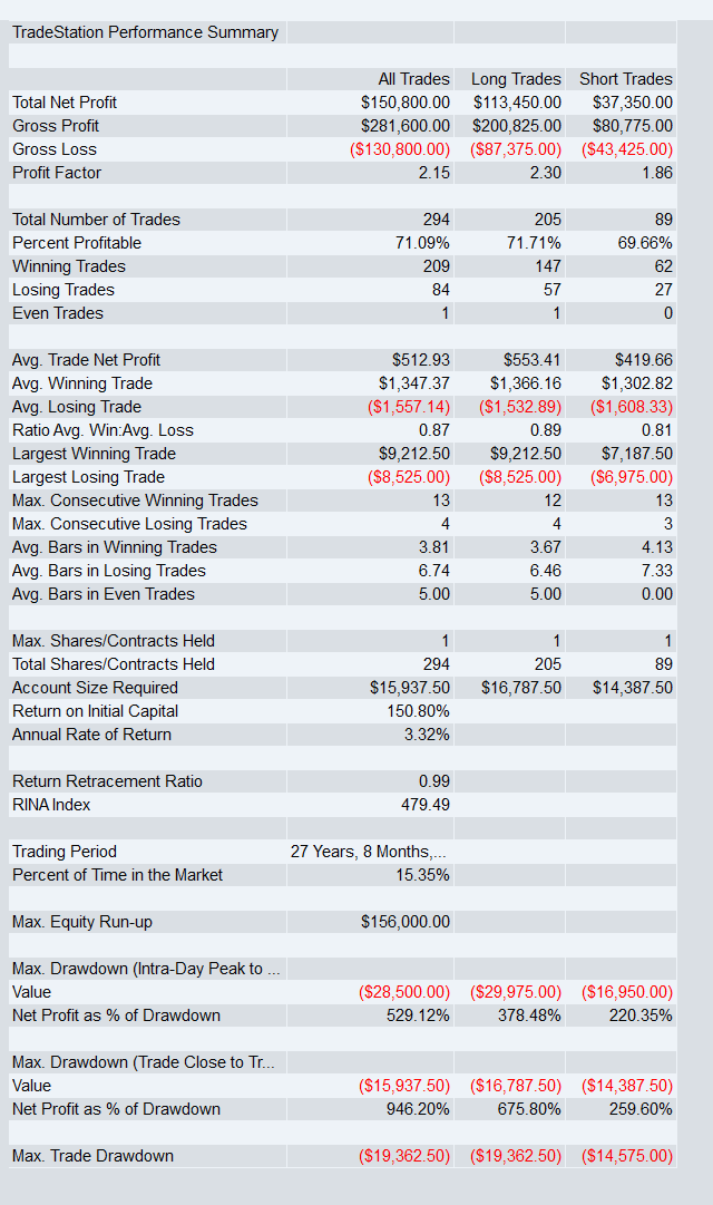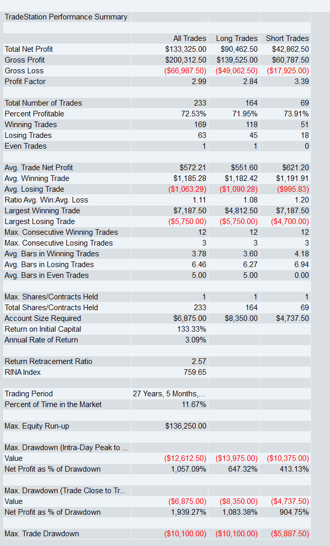 That said, I have added an optional fixed-dollar stop feature to the code. So if you are not comfortable trading without a stop, you can enable it and define your own dollar risk per contract.