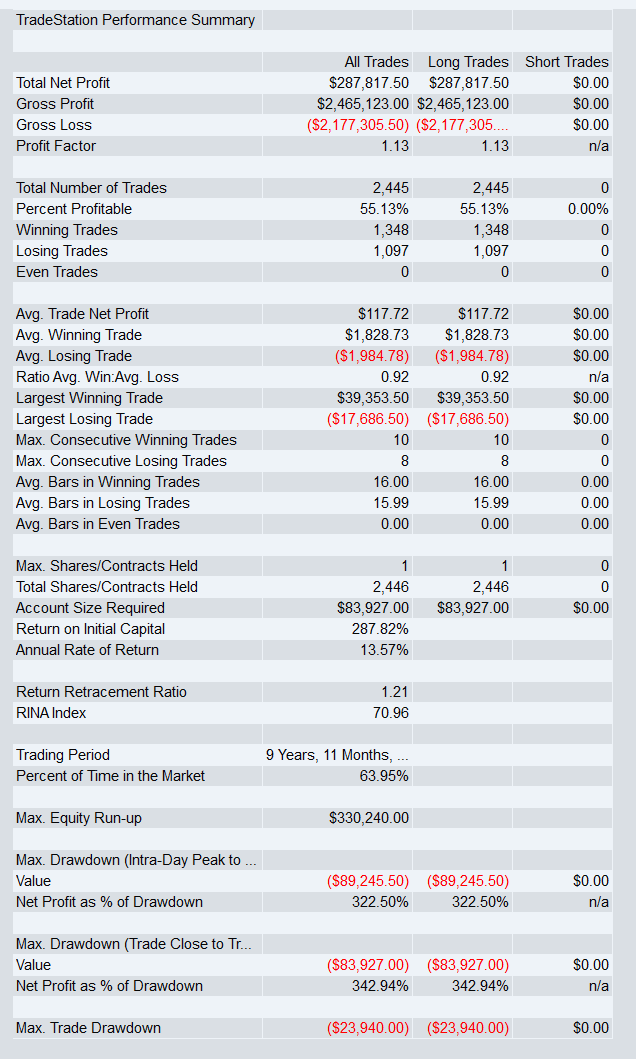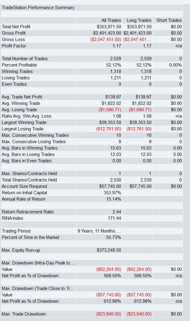 On a simple long-only NQ breakout, the baseline produced a 3.42 return-to-drawdown ratio.